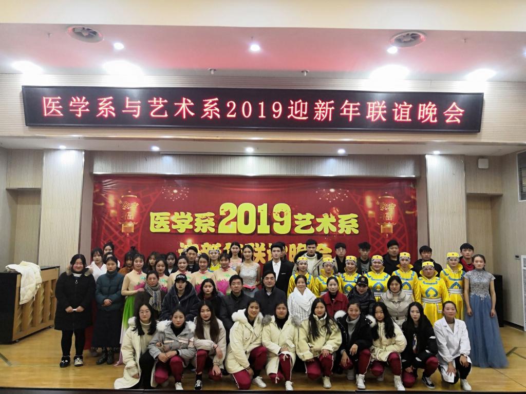 2019年1月3日下午,艺术系与医学系共同举办的迎新年联谊晚会在图文中心4楼报告厅隆重举行,学院党委书记米德成、两系党政负责人以及两系师生参加了联谊晚会。