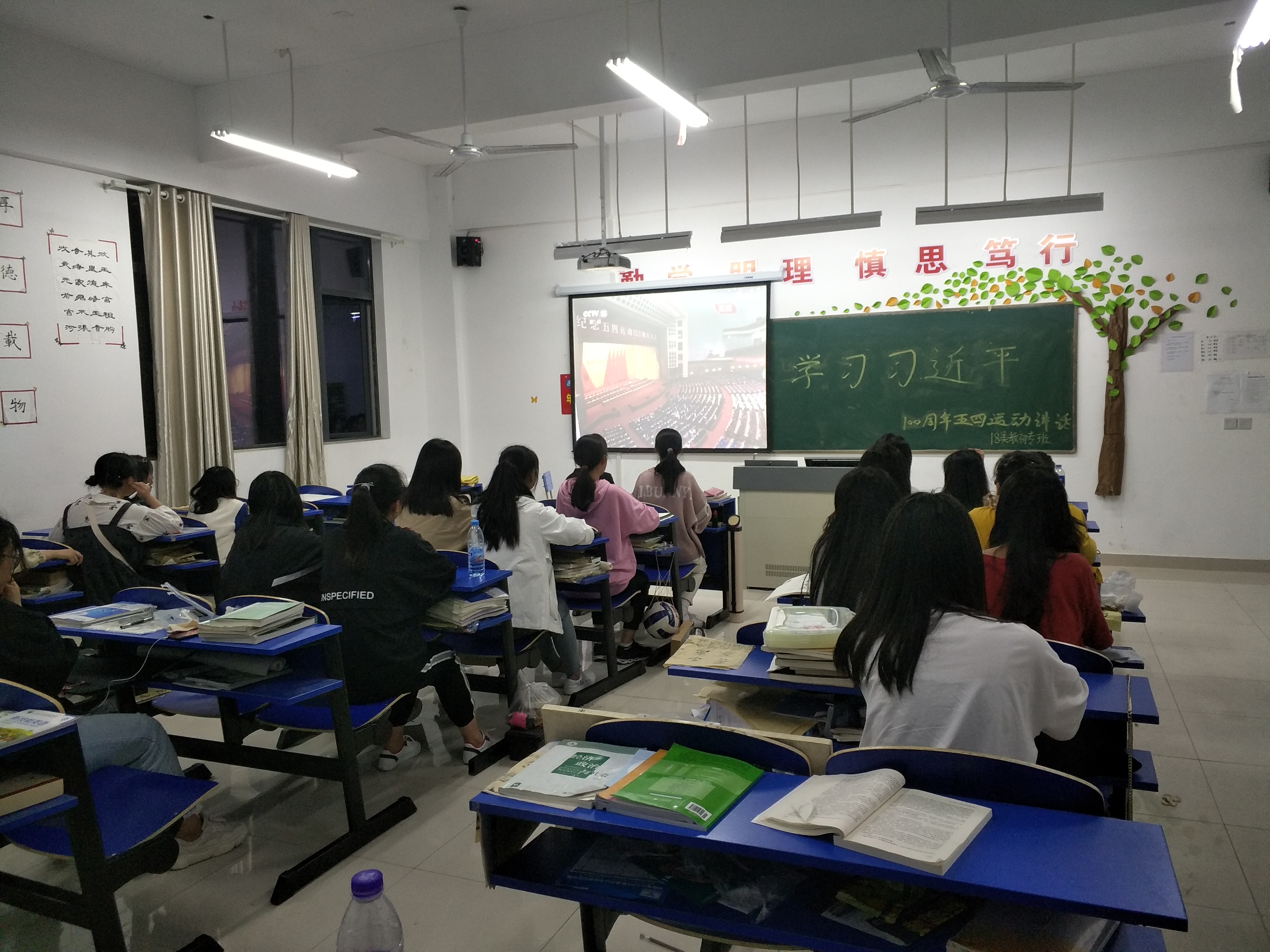 5月4日晚自习,艺术系团总支集中组织全系各团支部,学习习近平总书记在纪念“五四”运动100周年重要讲话,学习采取观看视频形式。