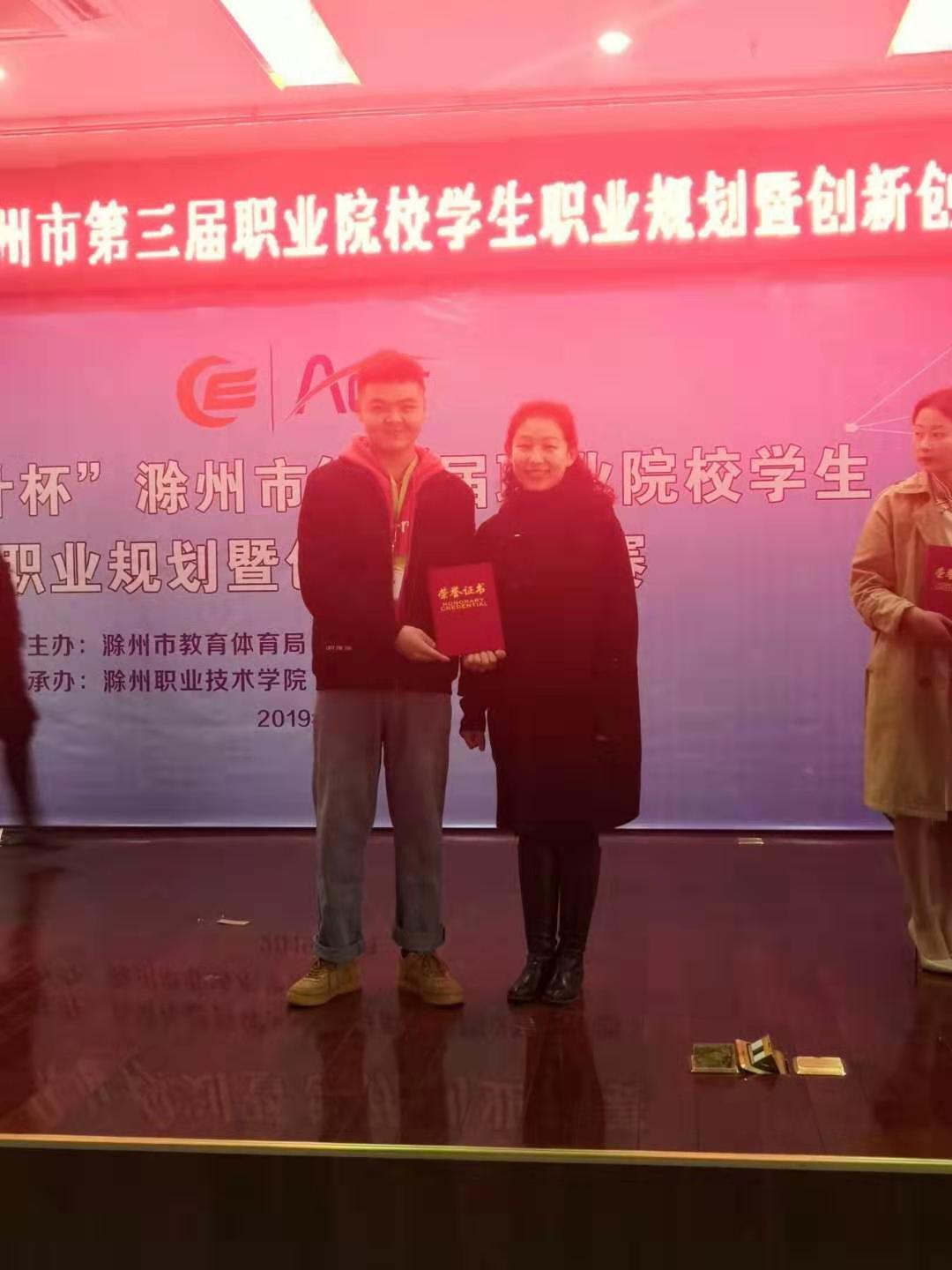 12月11日艺术系职业规划项目“儿童医疗机构环艺设计师”在滁州市教育体育局与安徽滁州职业教育集团决定联合举办“云伙计杯”滁州市第三届学生职业规划暨创新创业大赛中喜获市级二等奖。项目由艺术系18艺术设计班学生王成主讲,指导教师陈穆。