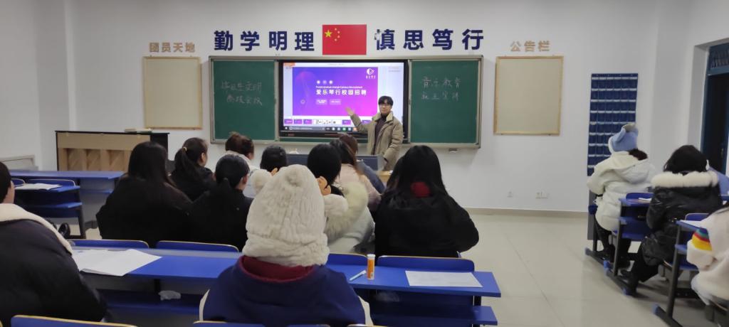 12月27日下午,艺术与传媒学院举办2022届音乐类毕业生实习就业专场宣讲活动,宣讲活动由滁州市南谯区爱乐琴行承担,因疫情原因公司没有进入现场,由谢添老师通过网络视频及现场介绍等方式组织。2022届音乐教育、音乐表演全体同学以及其他专业毕业生参加了此次活动。