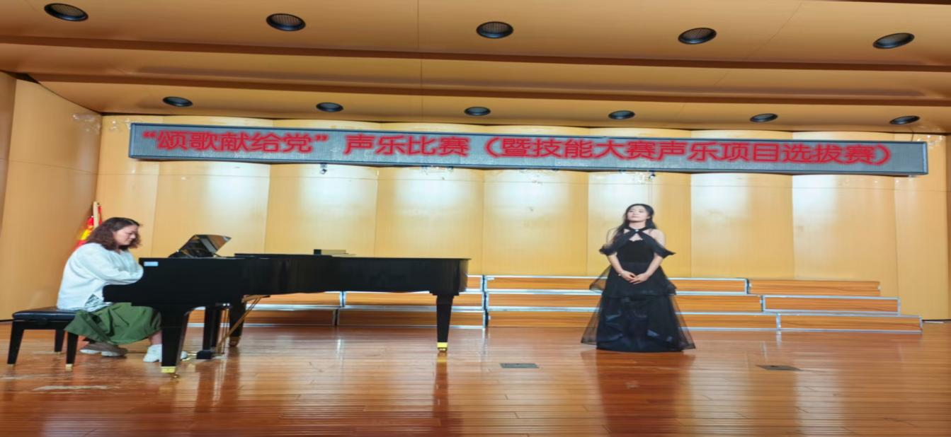 6月11日下午,艺术与传媒学院在音乐厅、智慧教室举行第七届“颂歌献给亲爱的党”主题声乐比赛暨2025年职业技能大赛校赛。
