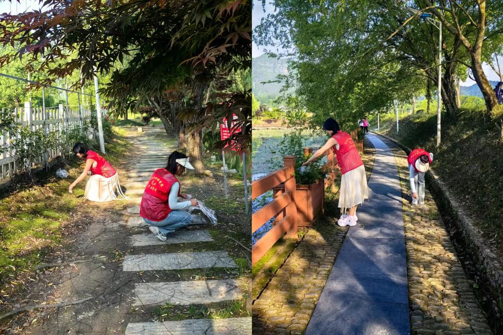 为了弘扬中华传统美德,促进广大青少年健康成长,团支部积极组织学生,秉承以劳动实践,践行感恩之心,以志愿者身份协助屏山村村民做家务,洗刷碗筷,打扫卫生。在屏山景区义务捡垃圾,为屏山景区自然风貌再添一抹光彩,持续践行以劳益美的活动