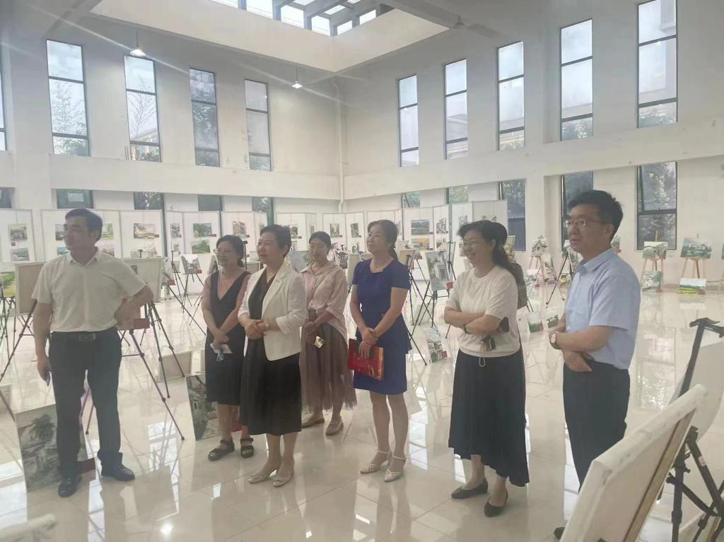 为了培养大学生专业学习兴趣,活跃校园文化艺术氛围,营造文化育人环境,2023年6月15日下午,在C3美术楼一楼展厅,滁州城市职业学院艺术与传媒学院“弘扬老区精神,賡续革命血脉”皖南写生作品展正式开幕,校党委书记张志华、党委副书记牛春雨、党委委员施向阳、党委委员副校长吴惠珍,以及各学院领导、师生代表参加了活动。