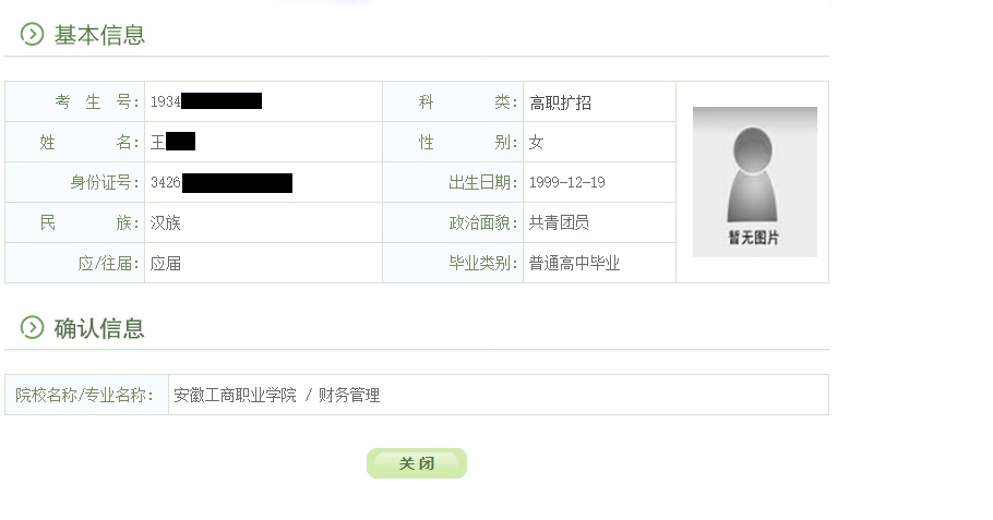 3.退出后重新登录gkbm.ahzsks.cn,可以查询到自己确认的院校:
