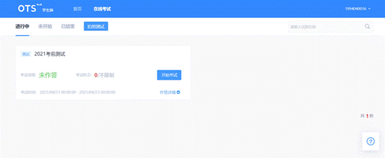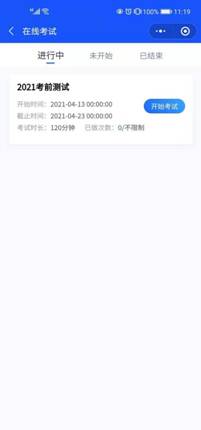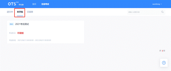 (2)点击在线考试,未开始,可以看到将要进行的考试