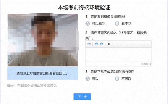 (8)答题完毕后交卷交卷时会再次进行身份验证,需要进行拍照!!!