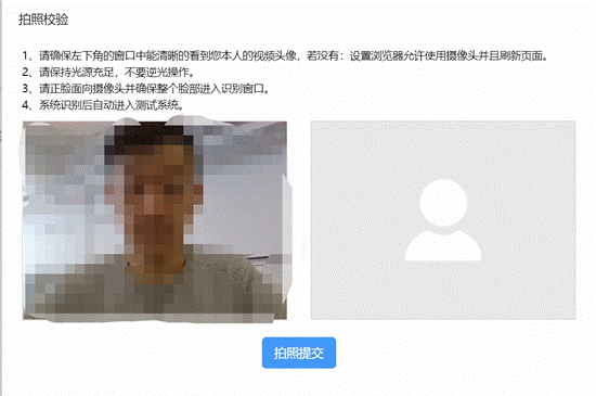 (7)点击开始后,会进入拍照识别阶段,此时需要把手机摄像头对准自己,或者进行自拍,验证通过后开始答题