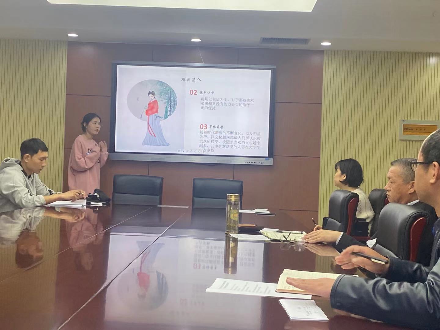 项目负责人及团队成员结合PPT,分别就项目的基础保障、项目运营、团队建设、日常管理以及所获融资和荣誉奖励情况,进行了项目答辩。《桃年小屋》项目利用线上线下运营及自媒体时代的新技术等,提升学院和本区域创意产品的多样性;《雅韵汉服》项目利用专业技术优势对传统项目的开发,凭借该产品的吸引力、优越性、发扬团队精神,对接汉服市场,向着更高的国内市场拓展。答辩过程中,评委老师结合国家政策、产业发展方向、创办公司流程、市场分析等对项目进行了精彩的点评和辅导,并对大学生勇于创业、理性创业给予赞赏。