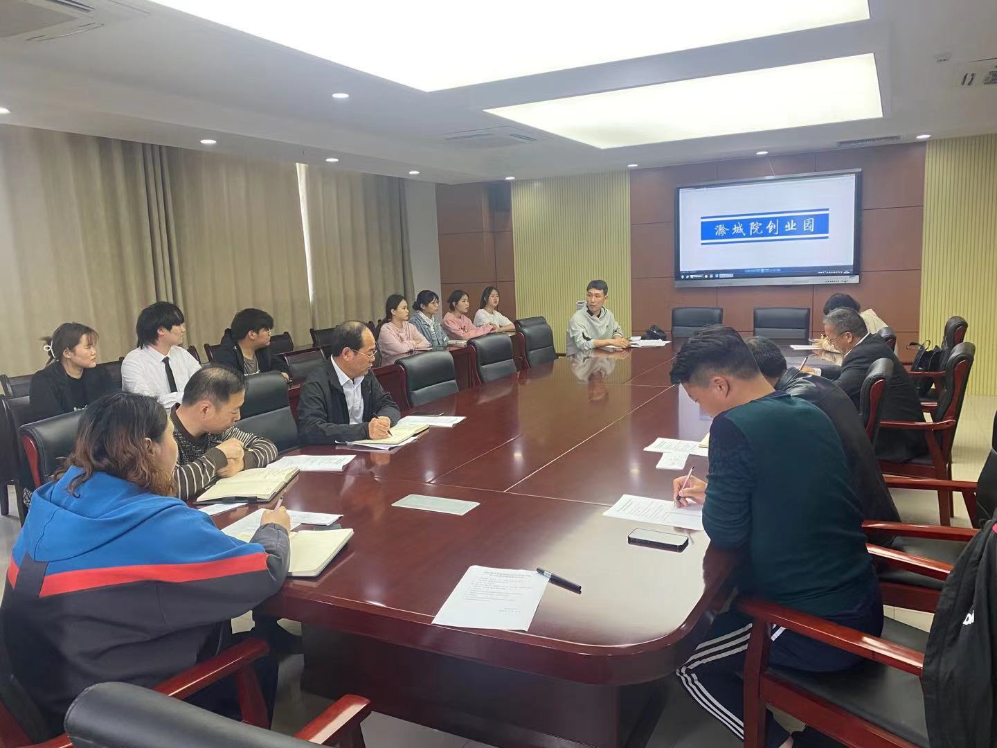 4月29日下午,滁州城市职业学院大学生创新创业孵化基地第六批项目遴选会议,在图文中心六楼第四会议室举行。副院长施向阳、科研处处长戴锦明、招生就业处处长叶士舟等担任项目评审,观看了5个申请孵化基地创业团队项目答辩。