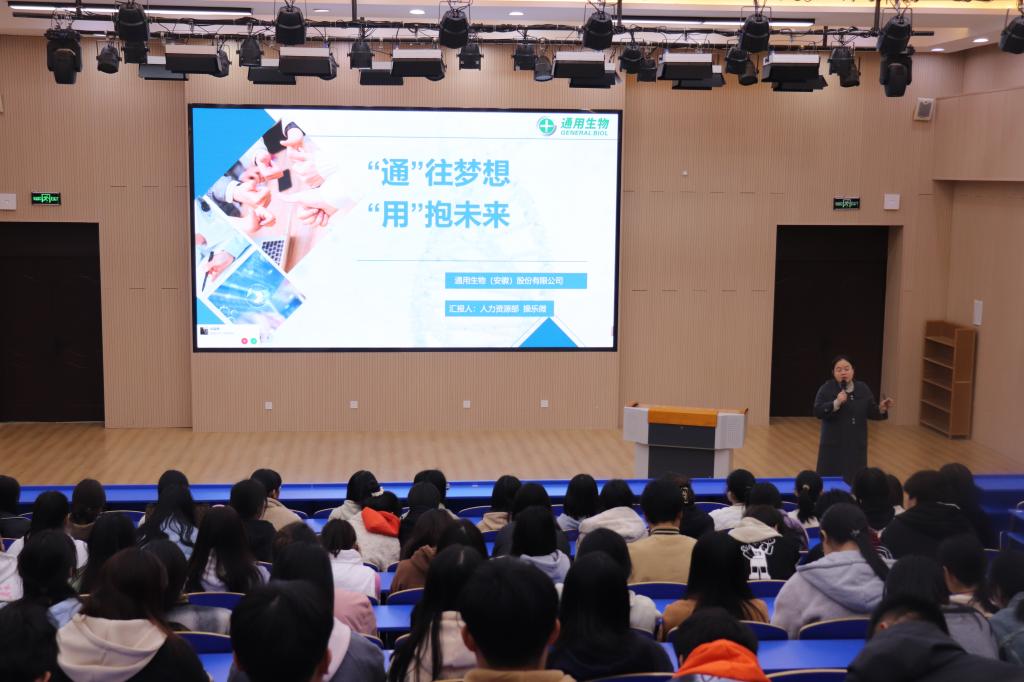 为提升学生职业素养,增进学生对企业的认知,帮助学生适应职场生活,11月16日下午,医学院邀请到通用生物(安徽)股份有限公司人力资源总监操乐微,在B4报告厅为2022级学生带来一场职业素养讲座。