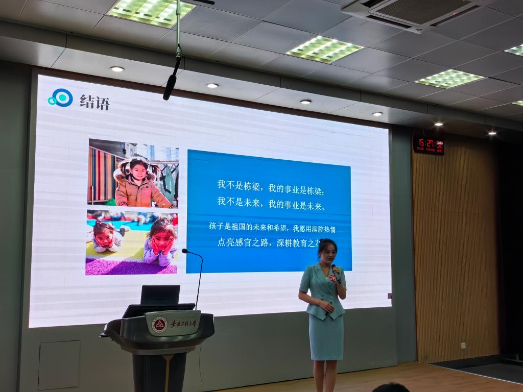 参赛选手、我校早期教育专业学生原玥说:“很高兴能代表学校参加这次比赛,感谢老师们的辛苦指导。通过比赛,自己在专业知识、职业技能、眼界思维上都有了很大提升,我将在本次比赛的基础上积极总结,希望能够在决赛上取得好成绩,为学校争光!”