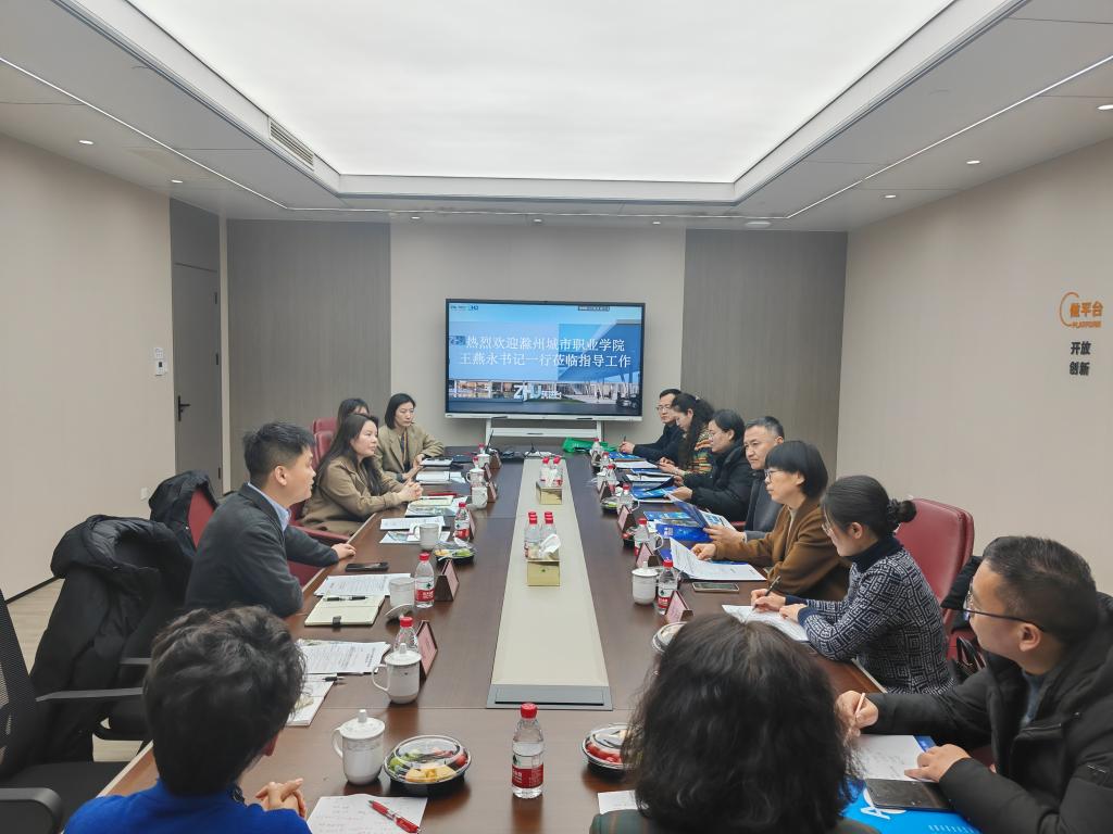 1月31日上午,校党委书记王燕永带队前往中新苏滁高新区进行访企调研。滁州市妇联主席周爱勤陪同调研。苏州艾隆科技股份有限公司董事长张银花、医谷(滁州)航空医疗研究院有限公司执行院长夏燕枝,筑医台(滁州)产业科技有限公司副总裁李留锁等参加座谈会。