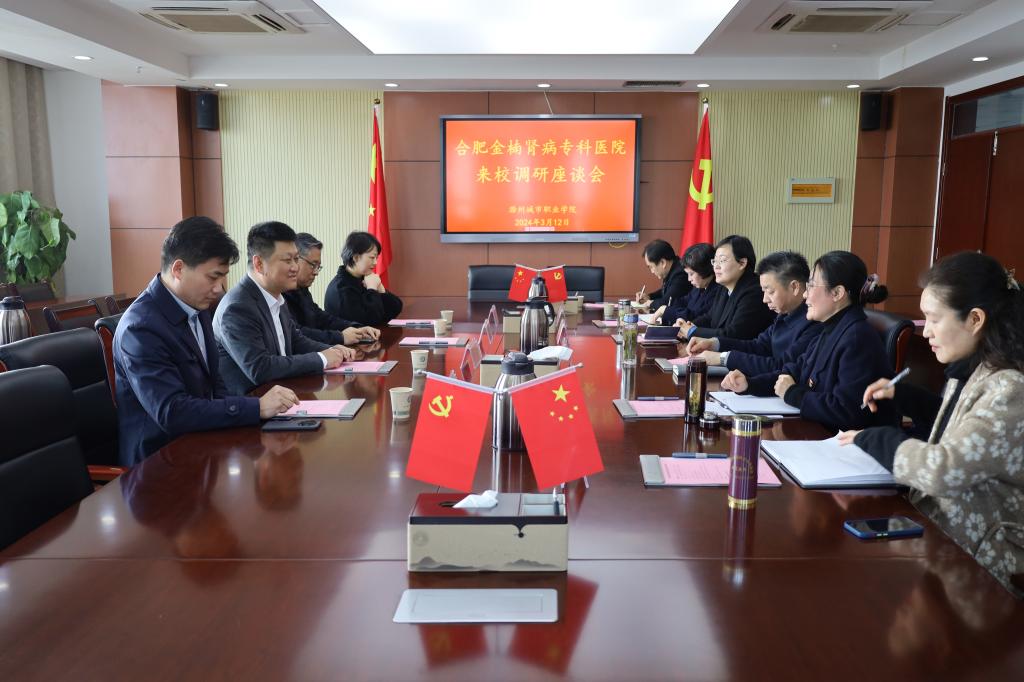 为进一步深化校院合作、产教融合,探索校院合作共建“订单班”新思路,实现校院双方互惠共赢,3月12日上午,我校与合肥金楠肾病专科医院的校院合作洽谈会在第四会议室召开。合肥金楠肾病专科医院院长祁坚,技术院长陈雷,办公室主任殷世民,护理部主任王红艳,校党委副书记、校长汪上,护理学院院长金虹,医学院党总支书记周慧等参加会议。会议由护理学院党总支书记蔡季秋主持。