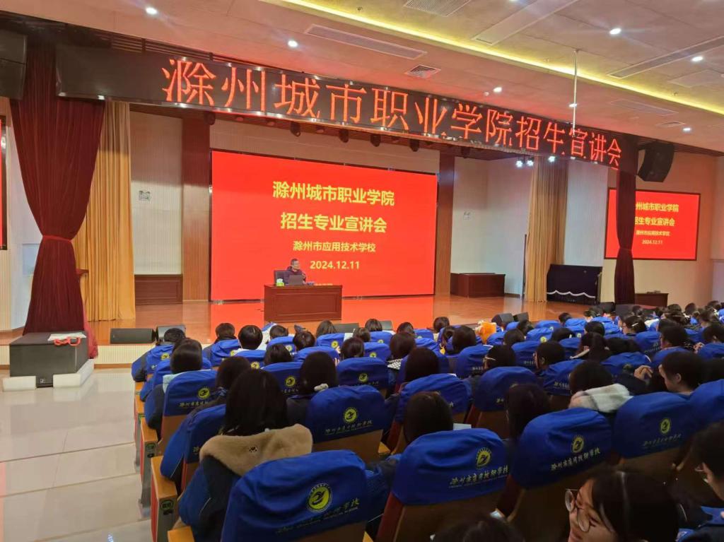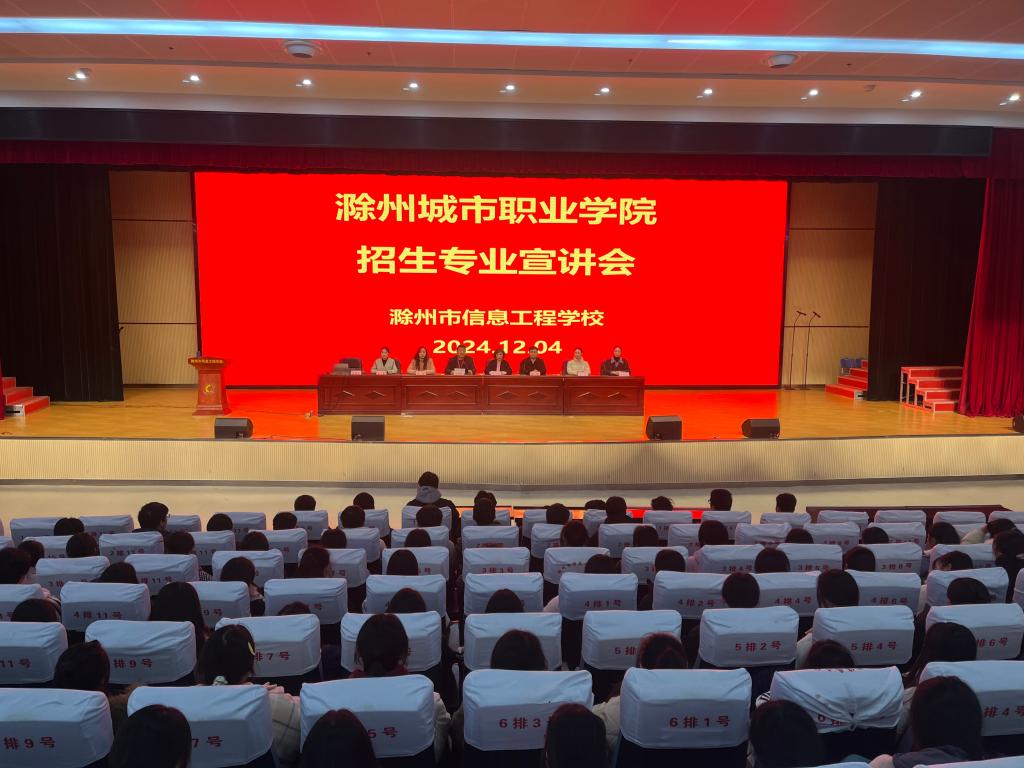 12月份以来,招生就业处和二级学院组建招生专业宣讲团,先后前往滁州市信息工程学校、滁州市机械工业学校和滁州市应用技术学校开展招生宣讲活动。宣讲会上,招生就业处面向广大师生以宏观视角介绍了学校的发展历程、办学特色、专业优势、招生政策、升学就业等。各二级学院分别介绍了院系的专业特色、就业前景、教学团队、校园生活等,并对同学们关心的问题进行了解答。滁州市机械工业学校副校长颜佳表示“作为学校的中专分校,非常重视与高职院校的交流合作,滁州城市职业学院的专业与市场紧密接轨,对于我们的学生来说是很好的选择。”