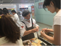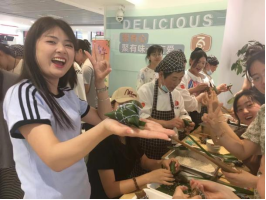 活动开始后,大家迫不及待的上手操作,把做好的食材放进粽叶中,跟随食堂阿姨的手法,绿色的粽叶都变成了一个个粽子。学生感受到传统节日的魅力,开心的展示着自己的劳动成果,活动在一片片欢声笑语中落下帷幕。