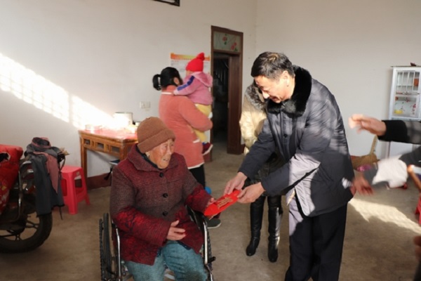 春节前夕,1月17日,党委书记米德成、党委副书记牛春雨、党委委员、办公室主任王素明、机关第一党支部书记马琴等一行深入凤阳县红心镇乌罗村、定远县三和集镇大陈村开展走访慰问困难老党员、困难群众和驻村第一书记活动,为他们送去了节前慰问。