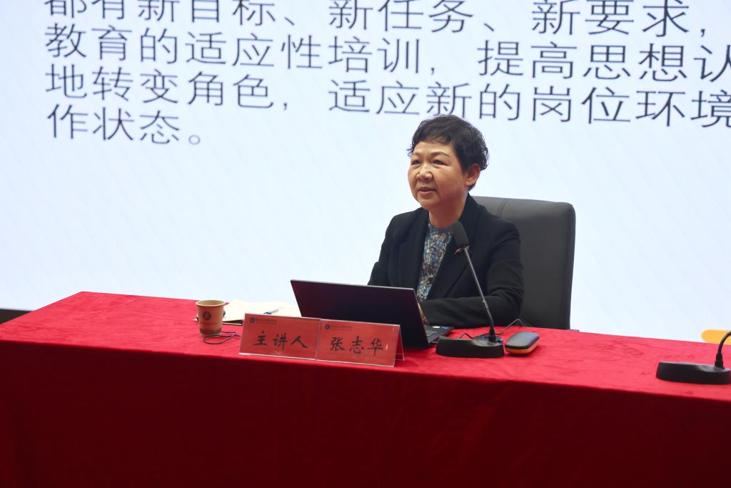 张志华结合丰富的教育实践经验,深入浅出地阐述了职业教育的重要性及其发展趋势。她强调,新时代的教育工作者应坚守教育初心,以立德树人为根本任务,将职业教育与国家、民族发展相结合,提升教师专业素养和育人能力,及时关注学生的成长并因材施教,注重培养学生的综合素质和创新能力。同时,要传道、授业、解惑,加强与学生的沟通交流,了解他们的需求和困惑,为他们提供有针对性的指导和帮助。教师要注重教师职业道德教育,坚定理想信念,做知识的传播者、品德的引路人、心灵的守护者,携手共进,改革创新,推动职业教育繁荣发展。