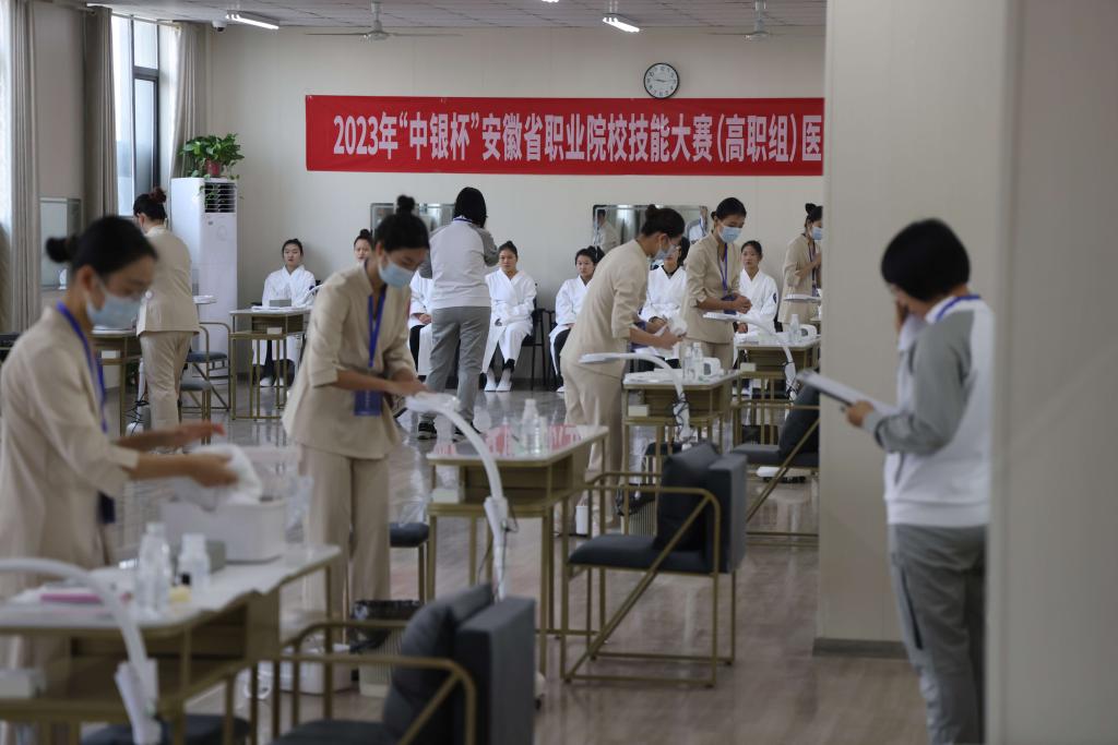 1月5日-7日,由安徽省教育厅、安徽省经济和信息化厅、安徽省人力资源和社会保障厅主办的2023年“中银杯”安徽省职业院校技能大赛(高职组)医学美容技术赛项在我校成功举办,来自省内11所高职院校21支参赛队伍的84名选手同场竞技、尽展风采。