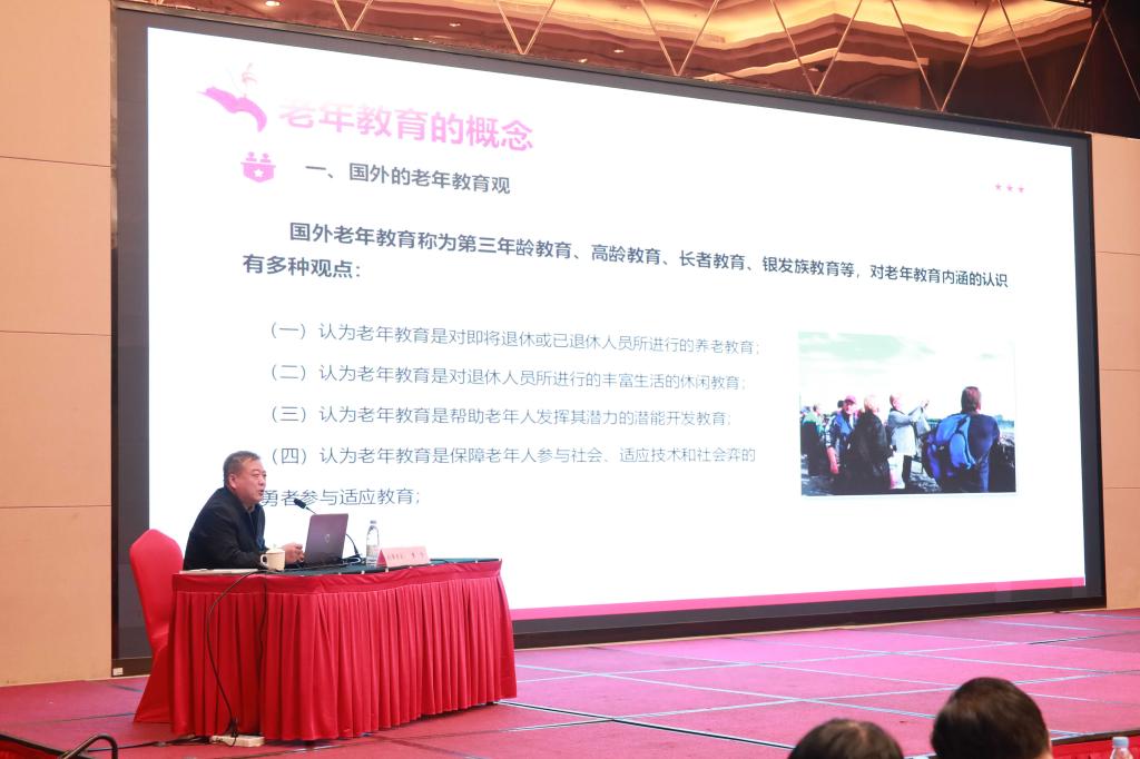 哈尔滨老年人大学原党组书记、校长,现任中国老年大学协会学术委员会副主任、黑龙江省老年大学协会副会长,中国老年大学协会老年大学标准示范校验收专家组专家王江,从“老年教育的概念、老年人学习的规律、老年大学的课程、厘清新时代老年教育课程体系建设、创建标准示范性软件建设”五个方面论述了通过强化内涵建设,推动学校高质量发展。