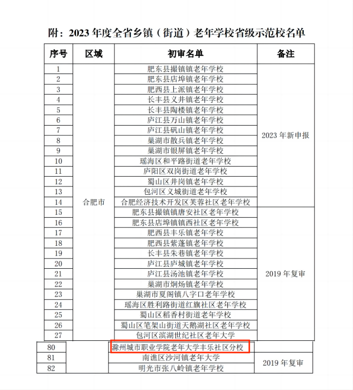 我校老年大学丰乐社区分校获“2023年度省级示范校”称号,是对我校老年大学工作的充分肯定,将激励我校继续全面贯彻新发展理念,助力建设高质量的老年教育体系,更好地服务广大老年学员,帮助他们老有所学、老有所乐。