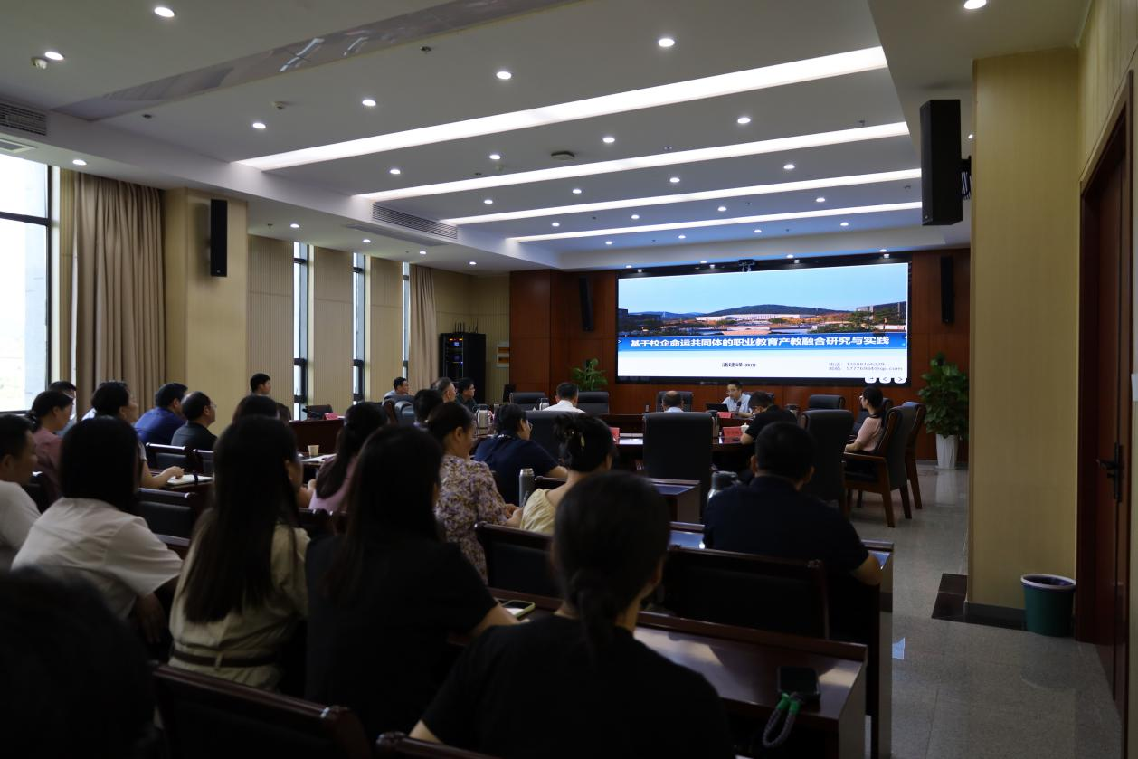 潘建峰校长为与会领导和老师们带来《基于校企命运共同体的职业教育产教融合研究与实践》的专题讲座。从“‘以用为始’的12字职教真金”到“基于工学结合的‘五金建设’”,用凝练的语言、丰富的案例向大家分享了杭科院在产教融合方面的研究与实践心得,为我校老师们带来了一场校企合作、产教融合优质经验的“营养大餐”,与会老师纷纷表示收获甚多。