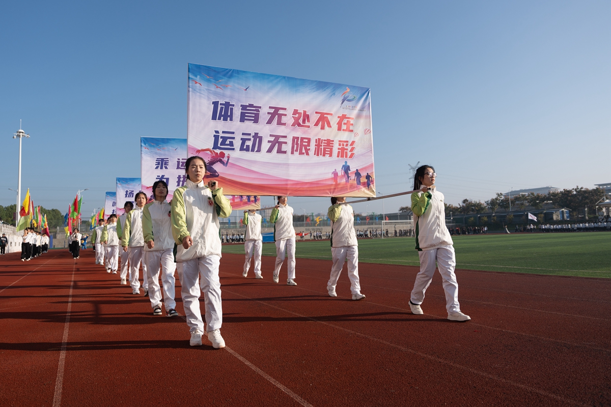 曹士东在致辞中代表学校对为筹备本届运动会付出辛勤劳动的全体工作人员、裁判员、运动员、师生表示了衷心的感谢。他指出,我校始终坚持深入贯彻落实习近平总书记关于加快建设教育强国、体育强国的重要论述,积极发挥体育在深化改革、全面推进学生素质中的作用。他强调,广大师生要重视体育锻炼,以本次运动会为契机展示才艺,要磨练个人意志,培养团队合作精神与集体荣誉感。