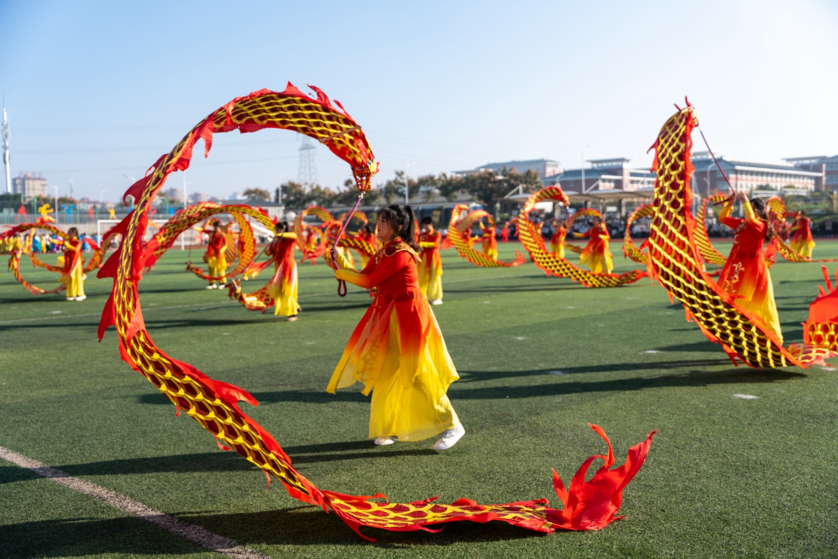 开幕式上,我校师生用各具特色的节目演绎了时代青年的风采,积极弘扬和传承了中华优秀传统文化,由教职工代表展示的八段锦尽显中国风韵,舞龙表演《龙舞感世:医韵健身颂华章》彰显华夏文明的魅力,大型啦啦操《最炫民族风》用激昂的音乐凝聚团结力量,铸牢中华民族共同体意识,《追梦人》《第九套广播操》等节目精彩纷呈,赢得了在场人员热烈的掌声。