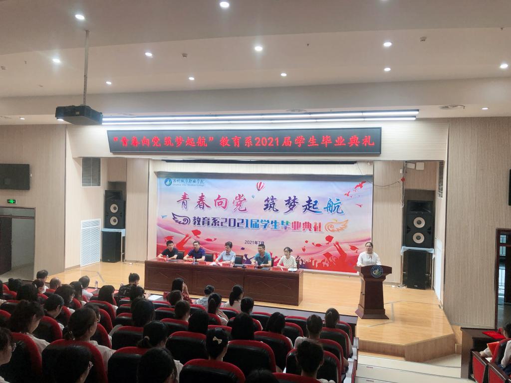 青春向党,筑梦起航。2021年7月7日上午,教育系2021届学生毕业典礼在图文中心报告厅隆重举行。学院党委书记张志华出席典礼,教育系党政班子成员、教师代表、辅导员代表、187名毕业生代表现场一起见证这难忘时刻。毕业典礼由教育系党总支副书记徐立娟主持。