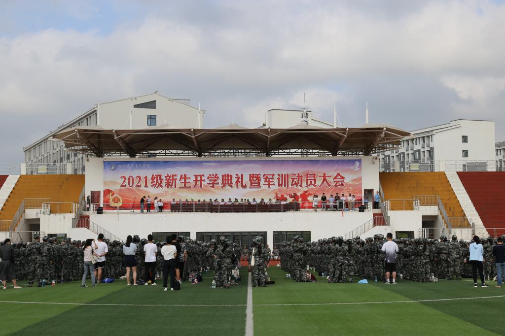 金秋送爽,丹桂飘香。9月13日上午,学院在运动场举行2021级新生开学典礼暨军训动员大会。党委书记张志华出席大会并宣布军训开幕,党委副书记、院长汪上致辞,院领导牛春雨、施向阳、程一斌、曹士东、徐云川、陈通出席会议,相关部门主要负责人和新生班级辅导员,承担本次军训任务的中国人民解放军驻滁某部教官及2021级全体新生参加了大会。大会由党委委员、副院长施向阳主持。