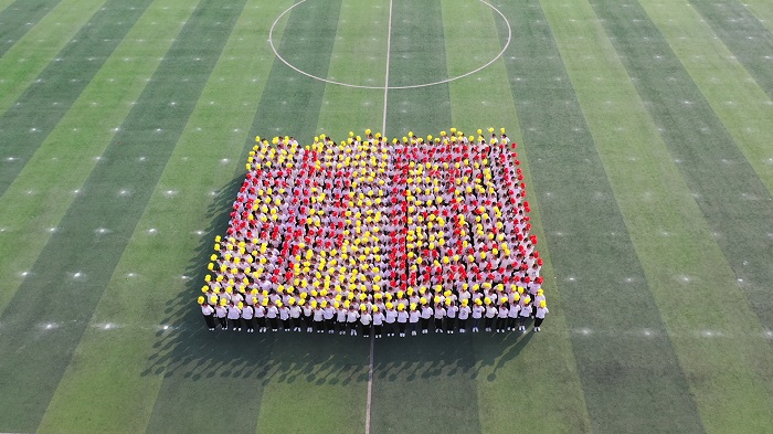 入场式后,举行了隆重的升旗仪式,全体师生肃立并奏唱中华人民共和国国歌。
