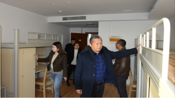 仪式之前,施院长一行还参观了实训基地,专业教室,了解了学生们的学习环境后,又走进了学生的公寓、食堂,考察基地学生们的住宿条件,饮食条件及菜品价位等。施院长对实践基地的规模与建设表示肯定,这为后期教学与实践结合提供了一个很好的平台,大大提升了学生的实训水平。