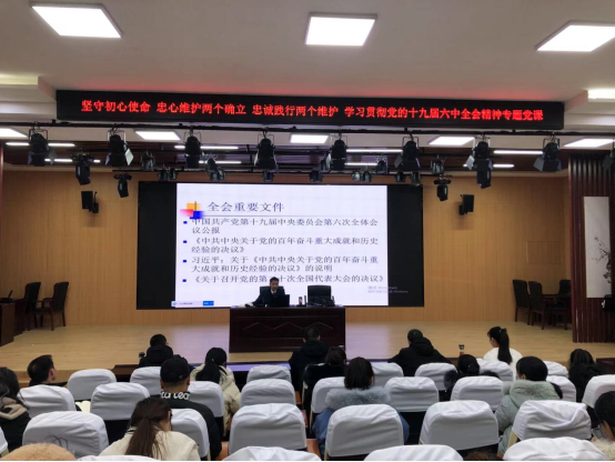 12月30日下午,校党委副书记、校长汪上就学习贯彻党的十九届六中全会精神为教育学院全体党员干部上了题为“坚守初心使命 衷心维护‘两个确立 ’忠诚践行‘两个维护’ 学习贯彻党的十九届六中全会精神”专题党课。党委委员、教育学院院长高国柱、教育学院党总支书记钱庆兵、副书记徐立娟、副院长刘明辉,全体党员干部及预备党员共计41人聆听了党课。