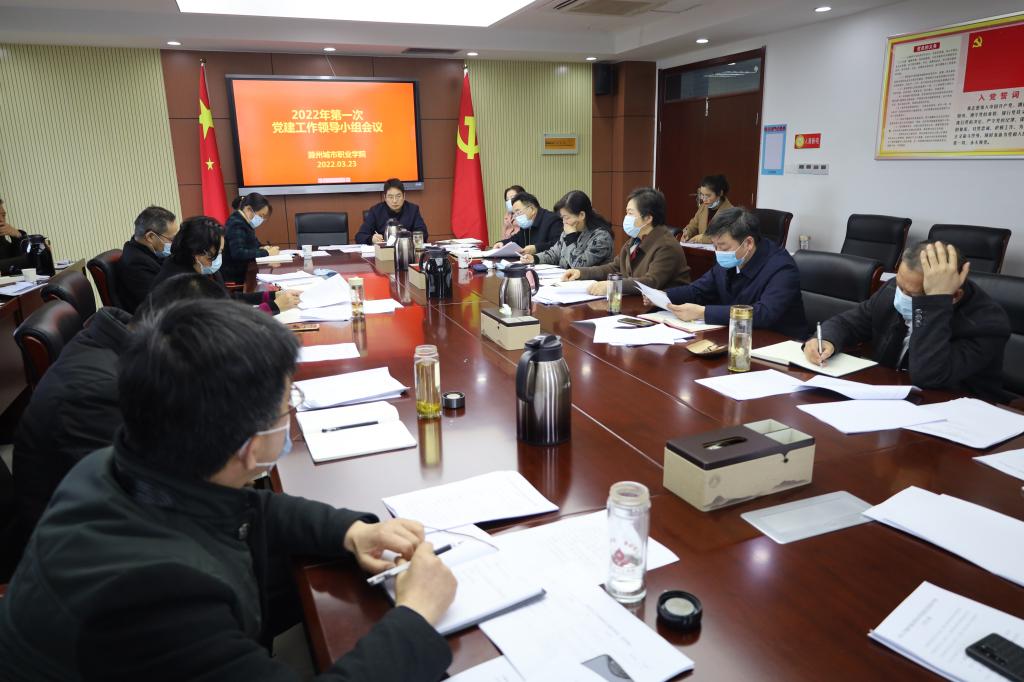 3月23日下午,学校召开2022年第一次党建工作领导小组会议。会议由党委副书记牛春雨主持,校党建领导小组全体成员参加会议,办公室、宣传统战部、组织人事处相关人员及二级学院专职组织员列席会议。会议主要有三项议程:第一项,党委委员、组织人事处处长徐云川汇报市直教体系统2021年星级党支部创建评定结果;第二项,讨论2021年度基层党组织考核实施方案;第三项,党委书记张志华讲话,并对近期校党建工作提出要求。