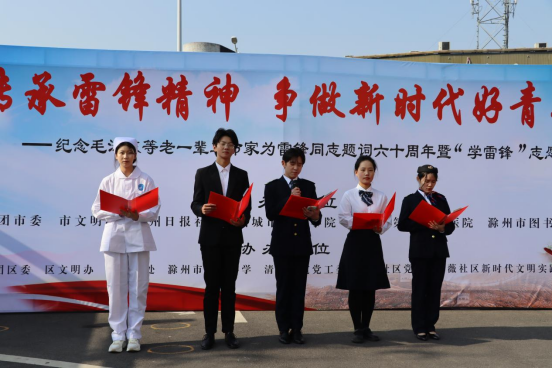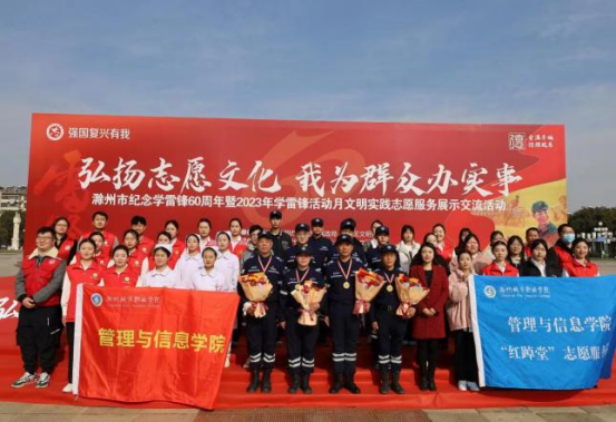 “红踔堂”青年志愿者服务队参加了滁州市“弘扬志愿文化 我为群众办实事”纪念学雷锋60周年暨学雷锋活动月文明实践志愿服务展示交流活动,志愿者们现场演唱了歌曲《学习雷锋好榜样》,并开展了礼仪志愿服务工作,学子们为不远万里“逆行而上”的土耳其地震救援队员献上鲜花,并向他们表示崇高的敬意。