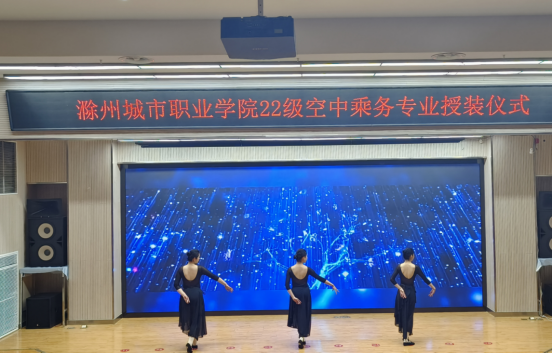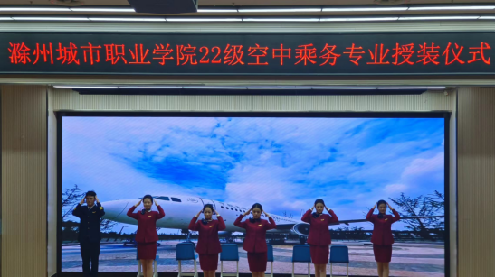 授装仪式在嘹亮的国歌声中拉开帷幕。滁州城市职业学院党委委员施向阳致辞。施向阳表示,今天举办的空中乘务专业授装仪式是一次很好的教育活动,同学们从老师、前辈手中接过的不仅是代表民航人风采的制服,更是一份责任与担当,也标志着大家已经成为了准民航人,希望身着制服的同学们能够代表空中乘务专业学生及民航业形象,在尊重制服、爱护制服的同时,热爱民航事业,恪守职业道德,加倍努力学习,掌握民航服务礼仪、客舱应急、乘务空防安全等基本知识,具备服务意识和安全意识,具备客舱服务与安全管理能力最终实现个人的蓝天梦,为民航助力,争当优秀的民航人。