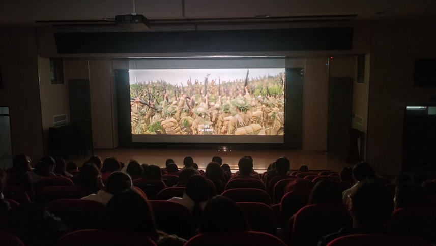 电影《志愿军:存亡之战》以宏大的叙事视角和逼真的战争场景,生动再现了志愿军战士们在艰苦卓绝的条件下,为了国家的尊严、民族的未来,不惜舍生忘死、浴血奋战的壮烈画面。从志愿军战士们雄赳赳气昂昂跨过鸭绿江的坚定步伐,到战场上硝烟弥漫、枪林弹雨的生死较量,再到战士们以顽强意志克服重重困难的感人瞬间,无一不让观影的同学们为之动容。影片中所展现的志愿军战士们对祖国和人民的无限忠诚,以及在绝境中不屈不挠、英勇抗争的精神,深深震撼了每一位同学的心灵。