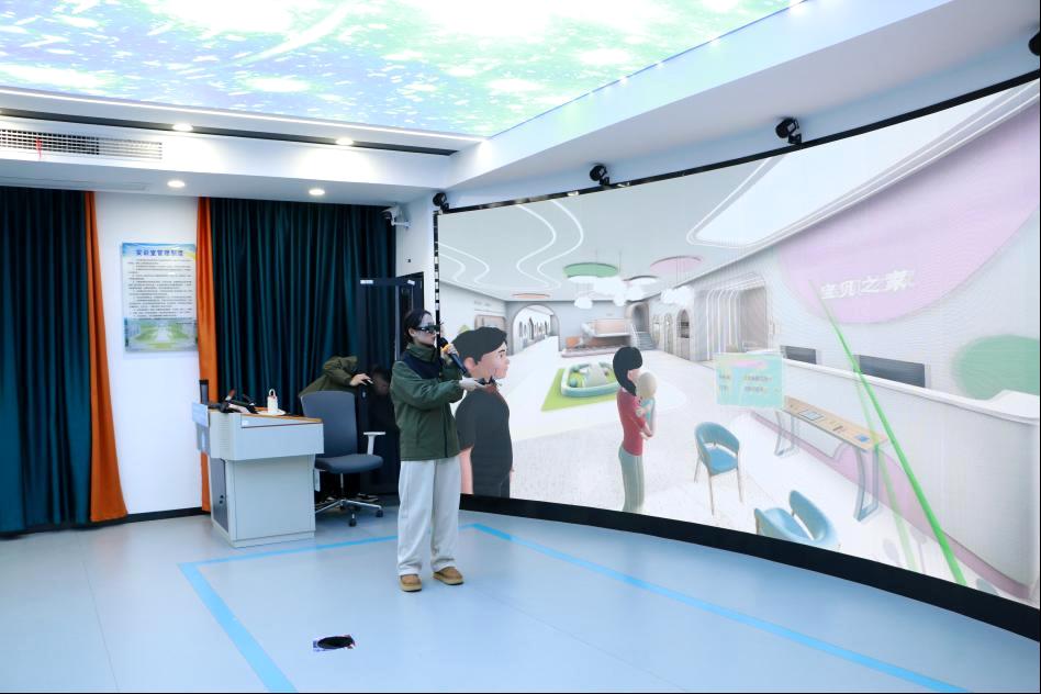 在虚拟仿真体验中心,李静老师带领同学们体验了沉浸式虚拟仿真技术,开启了探索元宇宙的大门。通过VR设备,同学们亲身体验了虚拟世界的奇妙,这种全新的学习方式极大地激发了他们探索科技的好奇心。