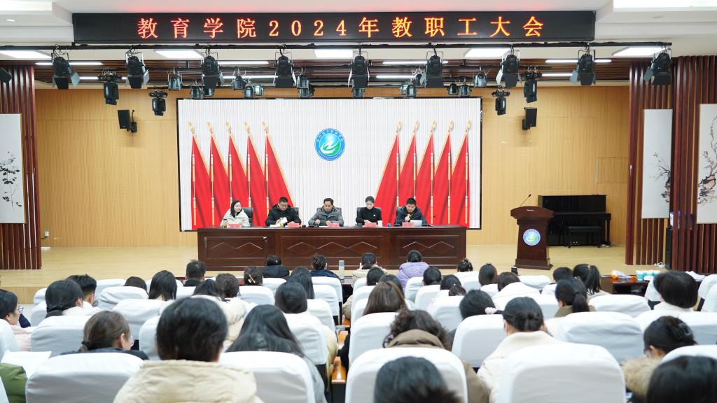 征途漫漫从头越,重任千钧再扬帆,12月26日下午,教育学院2024年教职工大会在学院报告厅隆重召开,全体教职工参加会议。教育学院党总支副书记陈立超主持会议。