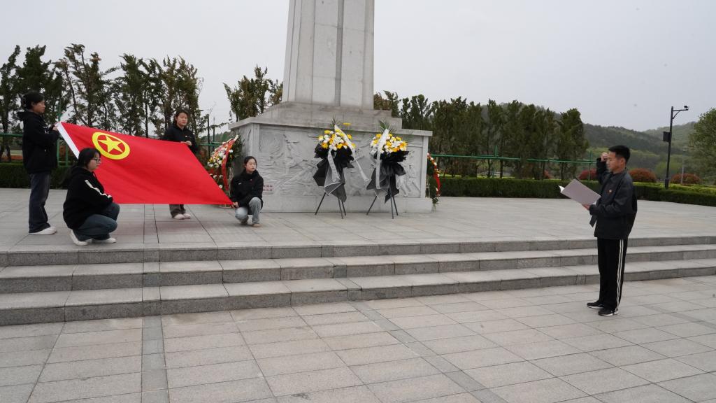 默哀仪式结束后,21小教初专3班王旭同学带领全体同学重温入团誓词。“我志愿加入中国共产主义青年团,坚决拥护党的领导......”同学们右手握拳,面向团旗庄严宣誓,洪亮的誓言在陵园上空久久回荡,彰显出新时代青年继承先烈遗志、为共产主义事业奋斗的坚定决心。
