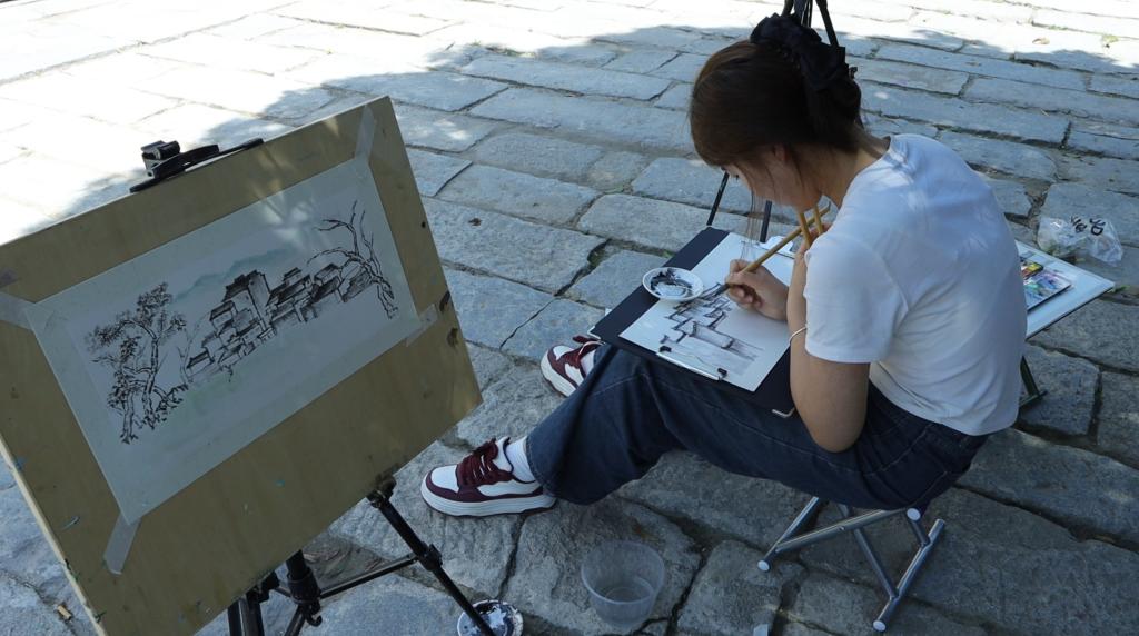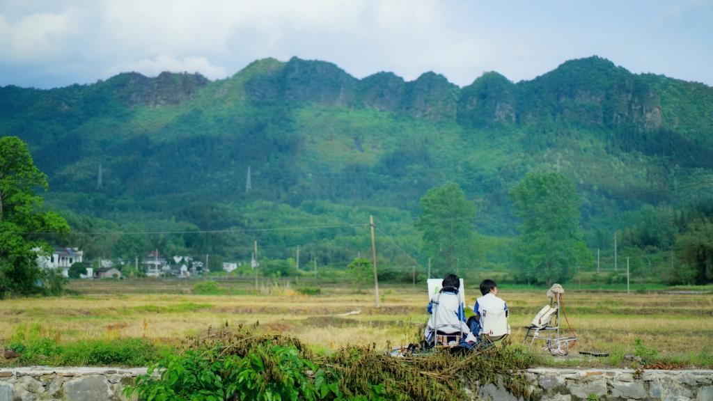 在为期十天的写生采风过程中,屏山村的古老建筑、宁静街巷以及秀美的山水,为师生们铺开了一幅极具徽州特色的画卷。师生们深入村落,亲身感受当地独特的风土人情与自然景观,将眼前的美景化作创作灵感。粉墙黛瓦的民居、蜿蜒流淌的小河、错落有致的梯田,成为他们笔下、镜头中的艺术素材。同学们走出校园,接触到不同的文化和生活方式,让他们对艺术创作有了全新的认识和感悟,极大地开阔了视野和眼界。在专业实践层面,师生们的构图及色彩运用、素材收集与转化、拍摄实操与短视频制作能力都在实践中得到显著提高。