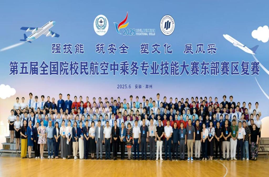 6月22日,第五届全国院校民航空中乘务专业技能大赛东部赛区复赛在滁州市中航未来华东航空实训基地圆满落幕。这场由中国航空运输协会主办,以 “强技能、筑安全、塑文化、展风采”为主题的赛事,汇聚山东、江苏、浙江、上海、福建、江西、安徽7省市24所院校的130名精英选手同场竞技,上演了一场民航技能的精彩对决。