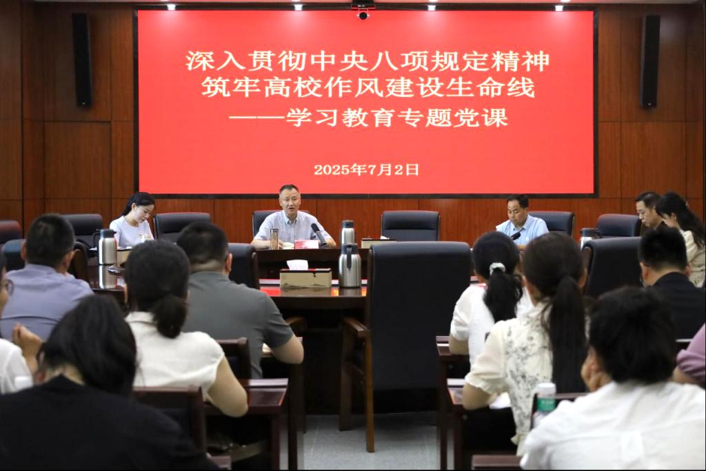 专题党课强信念。校党委书记王燕永以“深入贯彻中央八项规定精神,筑牢高校作风建设生命线”为主题,围绕中央八项规定的深刻意义、“四风”问题的主要类型、高校党员干部的表率作用三大维度,结合高校领域违反中央八项规定精神的典型案例,以“理论阐述+实践警示”的方式,全面解读了作风建设的深刻内涵和实践要求。学院党总支书记刘亮以“深学细悟砺初心、严纪守廉扬正气”为主题,从深刻认识中央八项规定精神的重大意义、准确把握中央八项规定精神的深刻内涵、以严实的行动践行中央八项规定精神等三个层面深刻剖析,强调以严实作风夯实育人根基。通过专题党课,党员同志清醒地认识到加强作风建设的重要性、忽视作风建设的危害性和搞好作风建设的紧迫性。