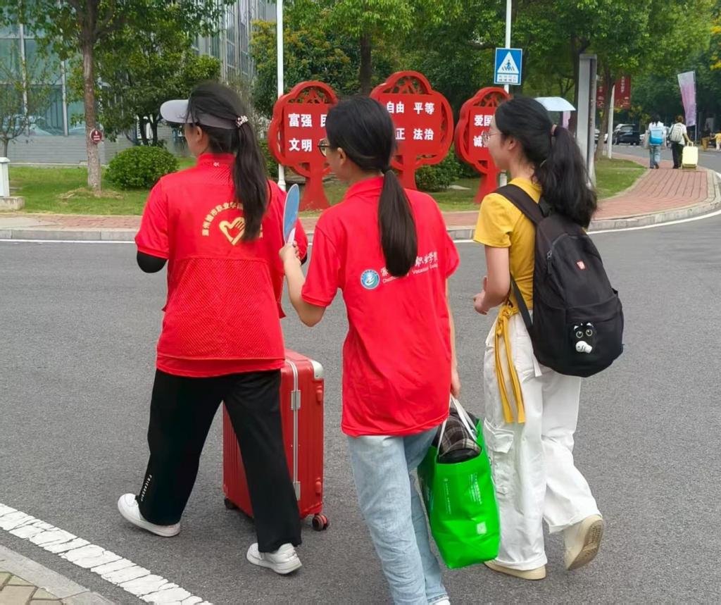 “同学你好,这边请,我帮你拿行李!”“报到流程在这张纸上,跟着指引很快就能办完!” 迎新现场,身着统一志愿服的学长学姐们成为最亮丽的风景线。他们早早抵达岗位,有的负责引导新生办理报到手续,有的协助搬运行李,有的带领新生熟悉宿舍、食堂、教学楼等校园设施,用耐心的讲解和热情的服务,让新生快速融入校园环境。来自25级护理专业的李同学说:“刚到学校时有点紧张,但学长学姐特别热情,帮我搬行李、介绍校园,还分享了学习和生活小贴士,感觉特别温暖,好像一下子就有了归属感。”
