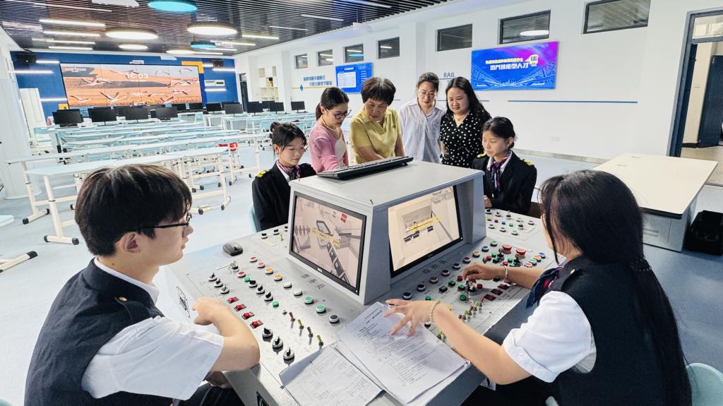 交流结束后,企业代表一行在我院交通运输系系主任邢桂先的陪同下,参观了交通运营管理专业相关实验实训场所,包括城轨智能运输实训室、车站设备实训室、运营综合仿真实训室等。现场学生进行了实操演示,流程熟练、动作规范,企业代表细致观看并与学生交流细节,对我院实训设施条件和学生的实践能力予以高度评价,同时从实际岗位要求出发,对实训内容优化提出了宝贵建议。