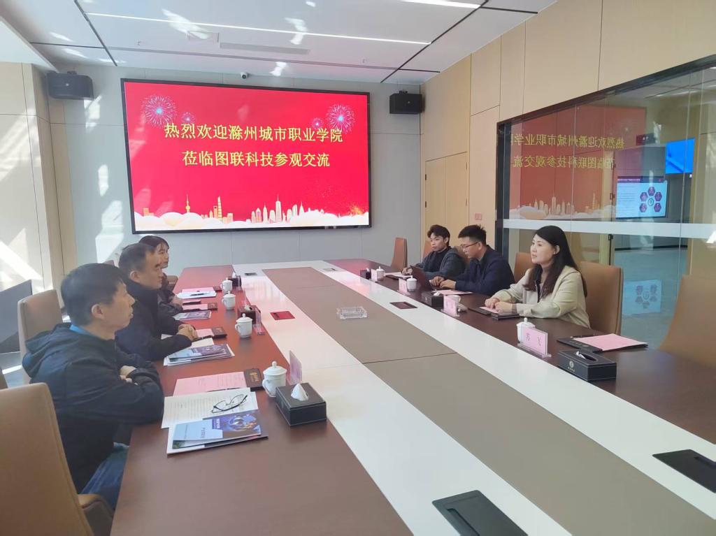 在安徽图联科技有限公司,公司副总裁陈华及核心技术团队热情接待了卢齐伟一行。考察组先后参观了企业展厅、数据资源中心与研发实验室,详细了解企业在核心业务领域的技术优势、发展规划及人才需求痛点。座谈会上,卢齐伟代表学院介绍了现代信息与人工智能学院的专业设置、师资力量、人才培养模式及毕业生就业概况,阐述了学院“以产业需求为导向、以实践能力为核心” 的育人理念。陈华副总裁详细解读了企业在数字经济发展背景下的人才培养计划,强调当前企业对数据处理等实操能力的复合型人才需求迫切。双方围绕人才联合培养、实训平台共建等议题展开深度研讨。