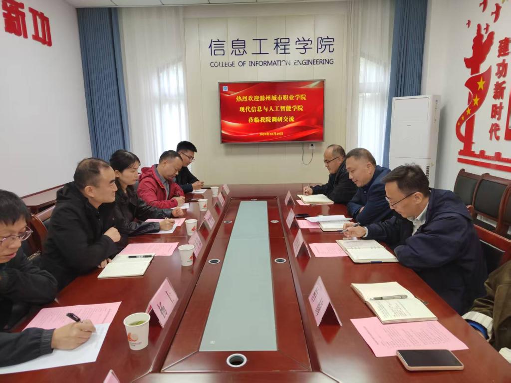 为进一步推进毕业生就业工作,深化产教融合、校校协同发展,精准对接行业需求与办学资源,10月29日,现代信息与人工智能学院党总支书记卢齐伟带队,一行 4 人先后赴安徽图联科技有限公司开展访企拓岗专项行动,赴安徽国际商务职业学院信息工程学院进行办学经验调研交流,以 “走出去” 的务实举措,为学院高质量发展注入新动能。