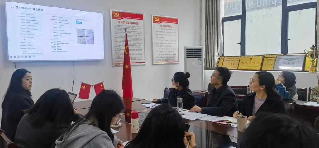 为进一步规范毕业生就业工作流程,提升毕业班辅导员就业工作业务能力,精准高效助力毕业生顺利就业,4月23日,艺术与传媒学院在党员活动室,特邀学校就业处黄天瑶老师开展毕业生就业工作专项指导培训。学院党总支书记杨孝富、副书记陈之娟及全体毕业班辅导员、班主任参加此次培训。