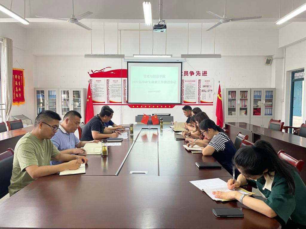 在就业工作关键阶段,为进一步落实《安徽省教育厅关于进一步推进高校毕业生就业工作的通知》的指示精神,为进一步做好我院2022届毕业生就业工作,管理与信息学院于6月20日上午在院会议室召开全体毕业班辅导员(班主任)工作会议,不能到校的班主任以腾讯会议形式参加,院党总支书记陈兴旺、学管秘书唐静以及2022届毕业班辅导员(班主任)参加会议,会议由陈兴旺主持。