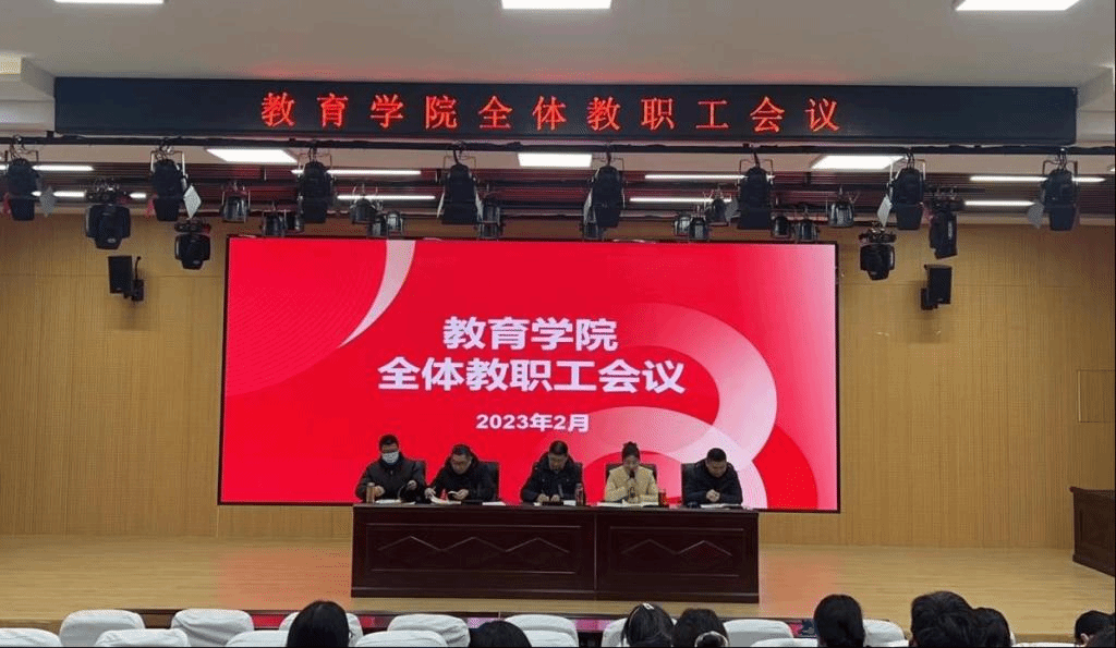 为切实做好2023年各项工作,推进教育学院师范专业人才培养高质量发展。2月9日上午,教育学院在C2北报告厅召开了全体教职工大会,教育学院党总支书记钱庆兵,校党委委员、教育学院院长高国柱,副院长徐立娟、刘明辉,副书记陈立超及全体教师参加会议,会议由徐立娟主持。