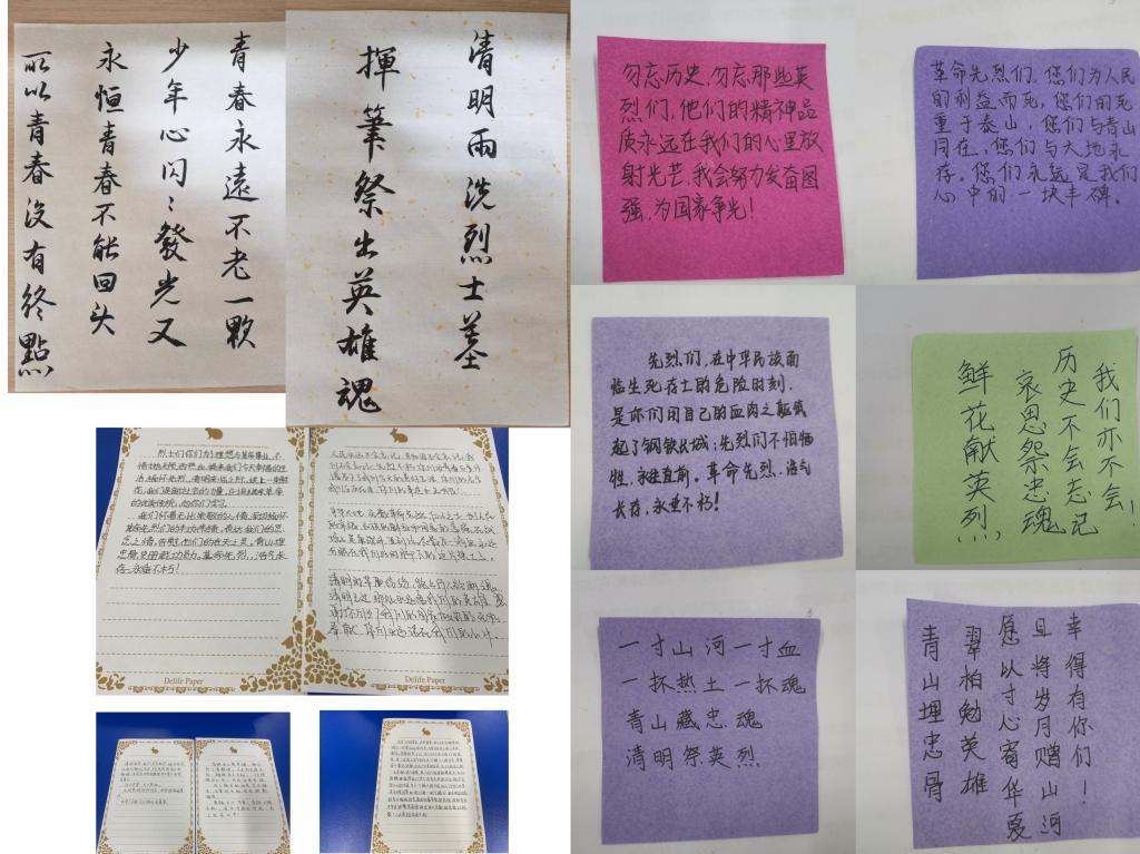 4月3日,各班团支部开展了“缅怀革命先烈,弘扬革命精神”主题团日活动。全体学生登录中华英烈网“清明祭英烈”专栏,进行网上祭拜、献花等祭扫英烈活动。随后,同学们观看革命先烈事迹专题片,学习英雄精神、诉说内心感受,手写祭奠寄语,表达对革命先烈的感恩怀念和景仰之情。